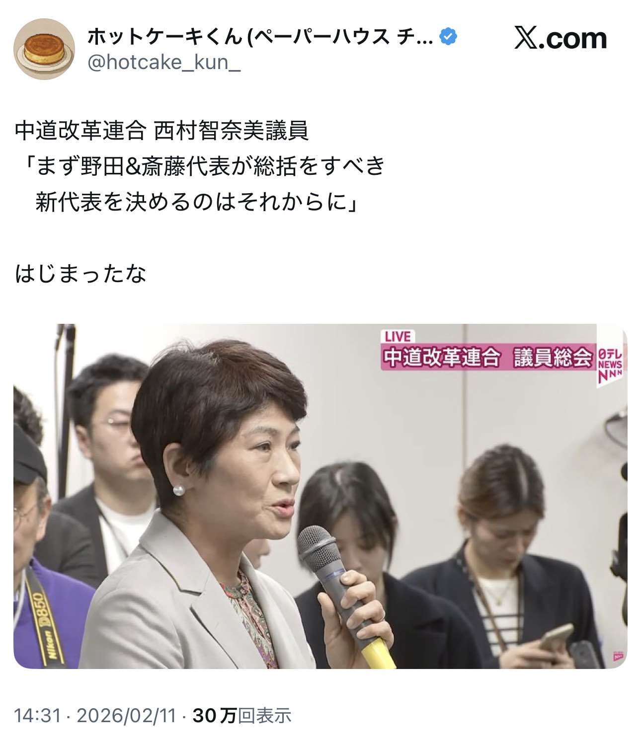 | … | 2無念Nameとしあき26/02/11(水)15:10:04No.1386600711そうだねx35 1770790204643.jpg-(100005 B) >中道改革連合スレ |