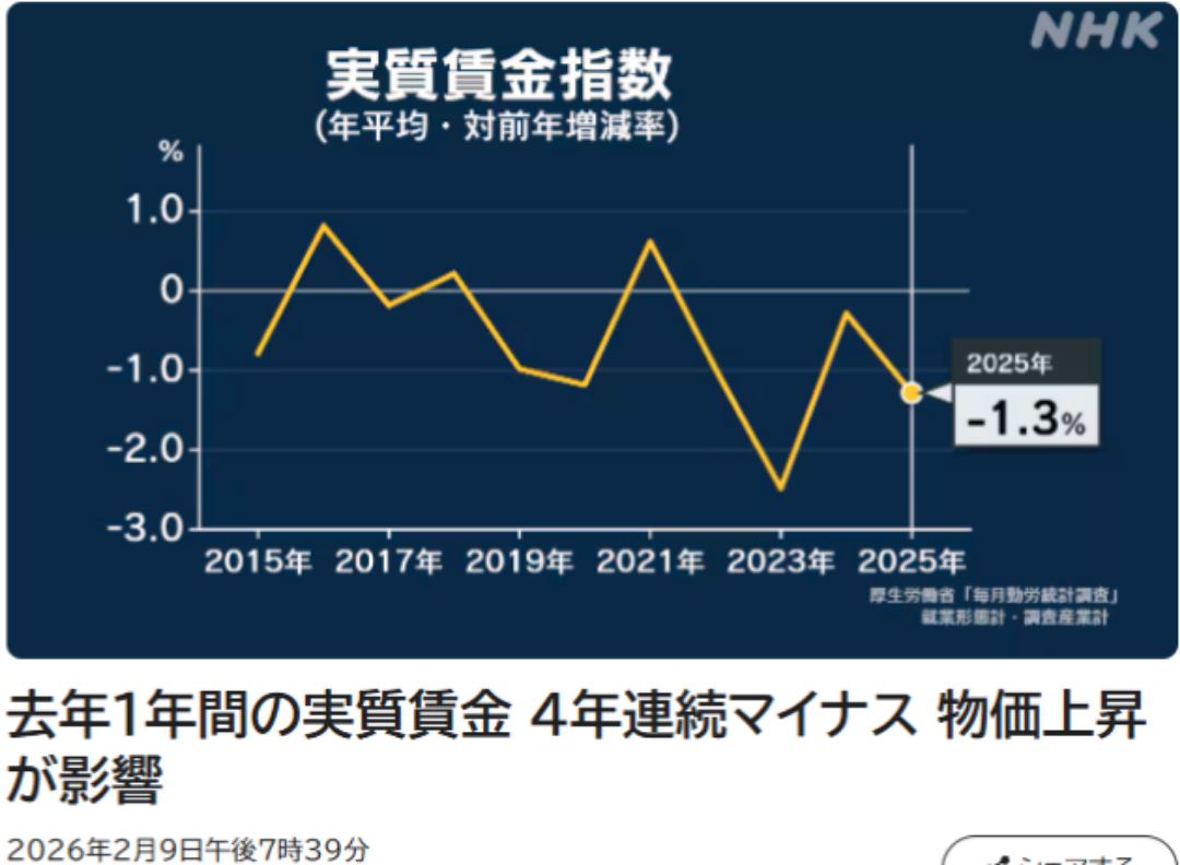 | … | 201無念Nameとしあき26/02/11(水)18:38:09No.1386646902+ 1770802689166.png-(313350 B) 実質賃金指数がこれだしな |
