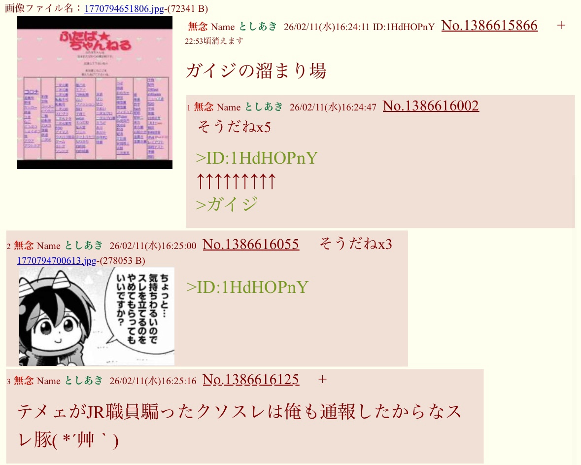 | … | 26無念Nameとしあき26/02/11(水)17:10:34No.1386625906+https://may.2chan.net/b/res/1386592993.htm |