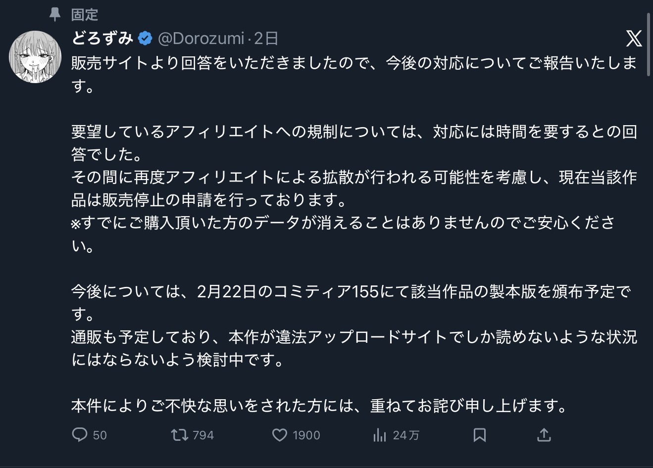 | … | 24無念Nameとしあき26/02/11(水)23:39:09No.1386732744そうだねx1>>作者逮捕されないの? |