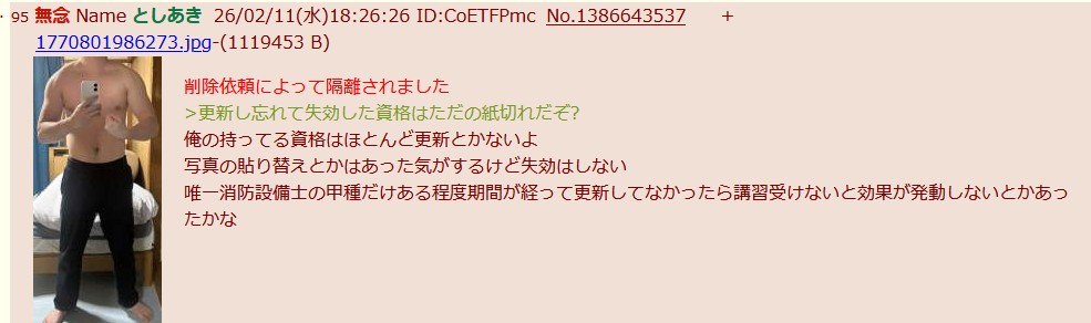 | … | 60無念Nameとしあき26/02/12(木)10:13:21No.1386786867+いつ頃とった資格なのか知らないが |