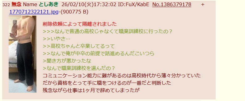 | … | 565無念Nameとしあき26/02/12(木)14:48:05No.1386828761+豚を擁護する訳じゃないが職業訓練校行く位までは不登校な位で深刻じゃなかったのかもしれない |