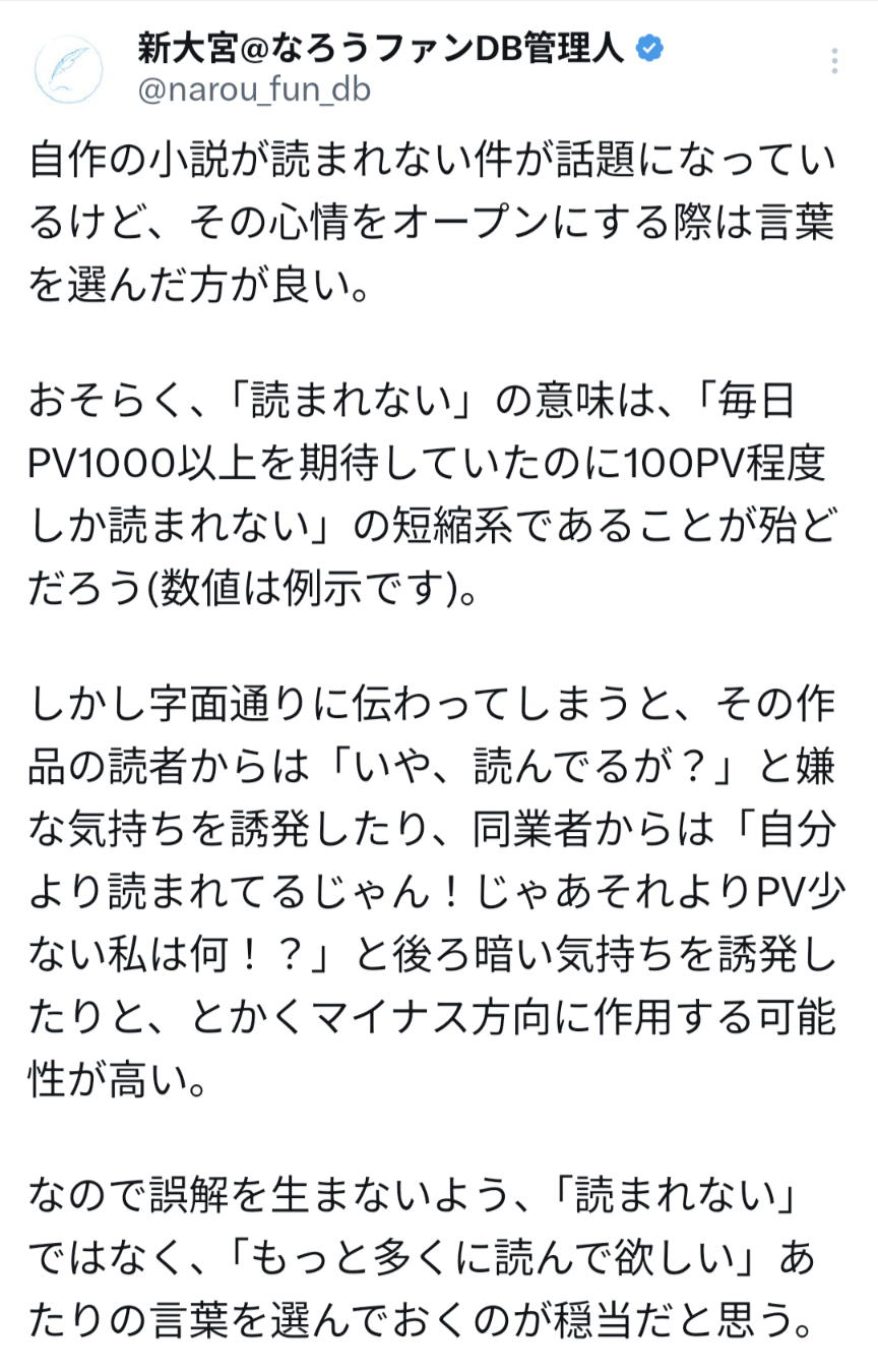 小説が……読まれない!!削除された記事が1件あります.見る