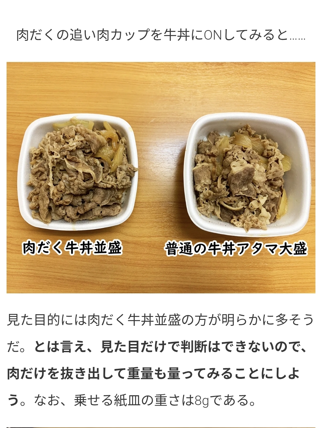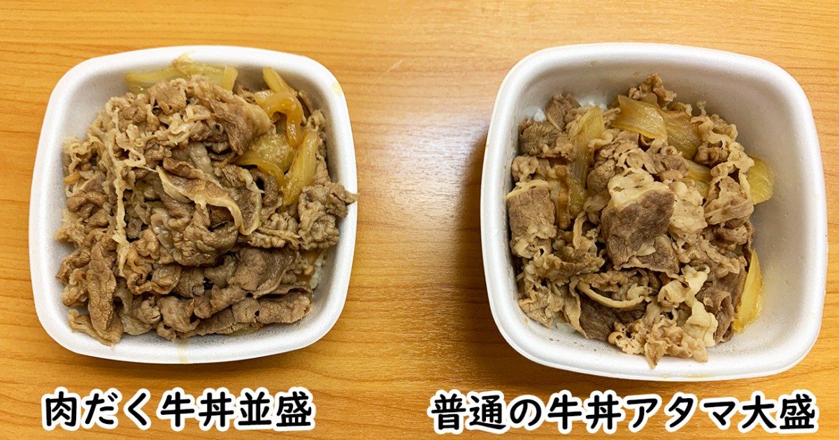| … | 13無念Nameとしあき26/02/12(木)14:26:35 ID:LB6YJmsMNo.1386825688そうだねx2【比較検証】吉野家の「肉だく牛丼並盛」と「普通の牛丼アタマ大盛」はどっちが肉の量が多いのか? 牛肉だけ抜き出して量ってみた |