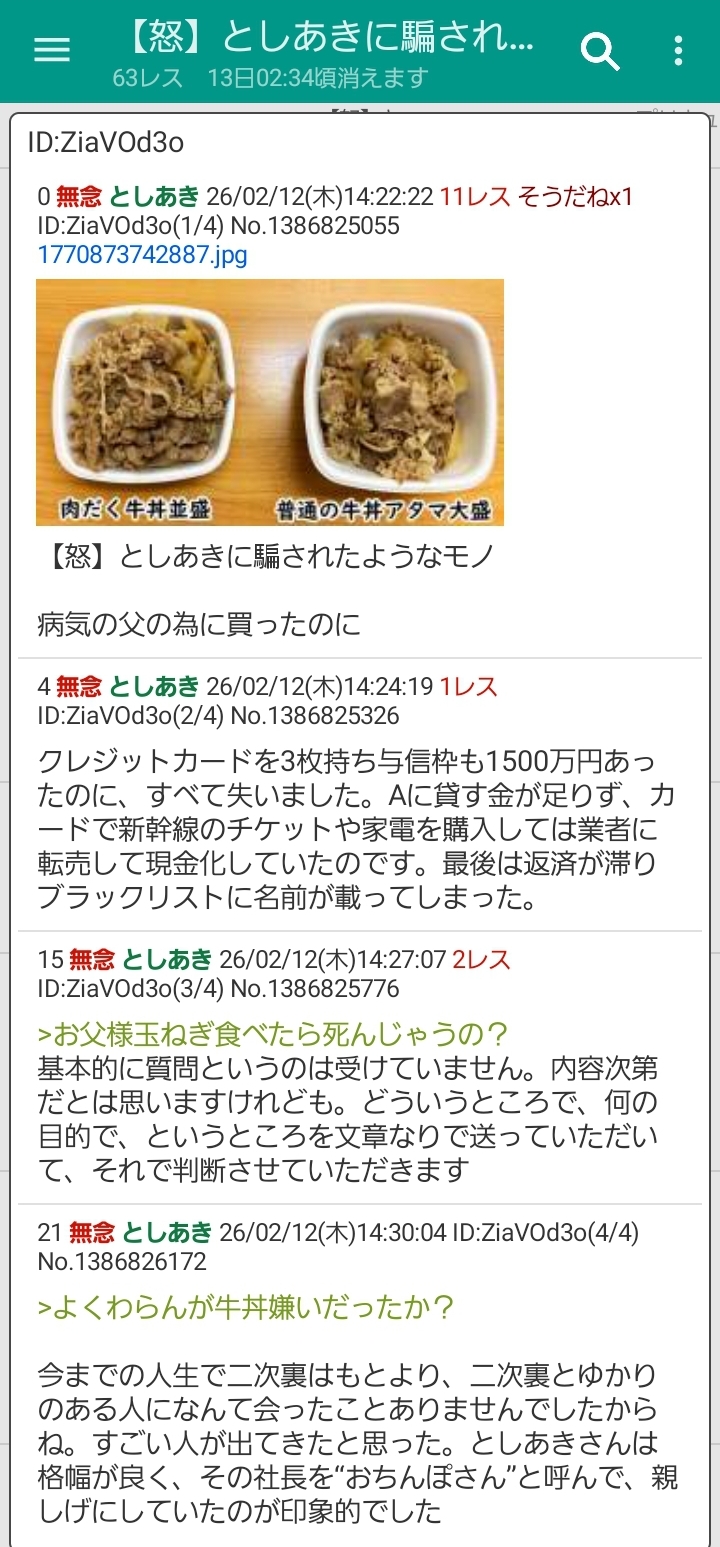 | … | 7無念Nameとしあき26/02/12(木)14:24:42No.1386825392そうだねx10>【怒】としあきに騙されたようなモノ |