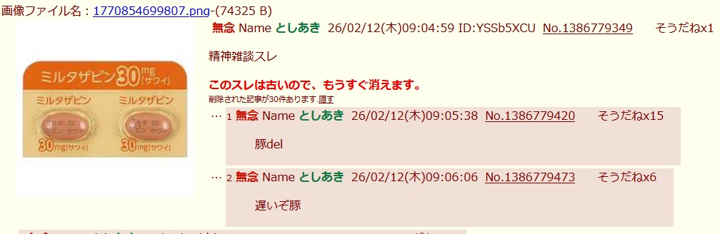 | … | 82無念Nameとしあき26/02/12(木)16:29:03No.1386844901+>やっぱ強い薬飲んでるんだな |