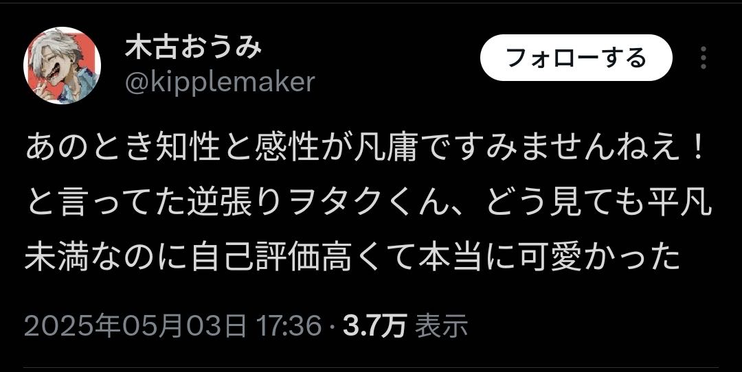 | … | 23無念Nameとしあき26/02/13(金)01:14:54No.1386971773そうだねx2作家であることに価値を感じてて作品それ自体はどうでもいいからゴーストライターとか絶対やらないだろ |