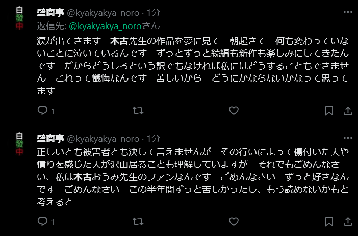 | … | 773無念Nameとしあき26/02/13(金)02:42:20No.1386980228そうだねx3>そういや半年前は出版社が守ってくれるみたいなこと裏垢で言ってたけど結局どうなったの? |