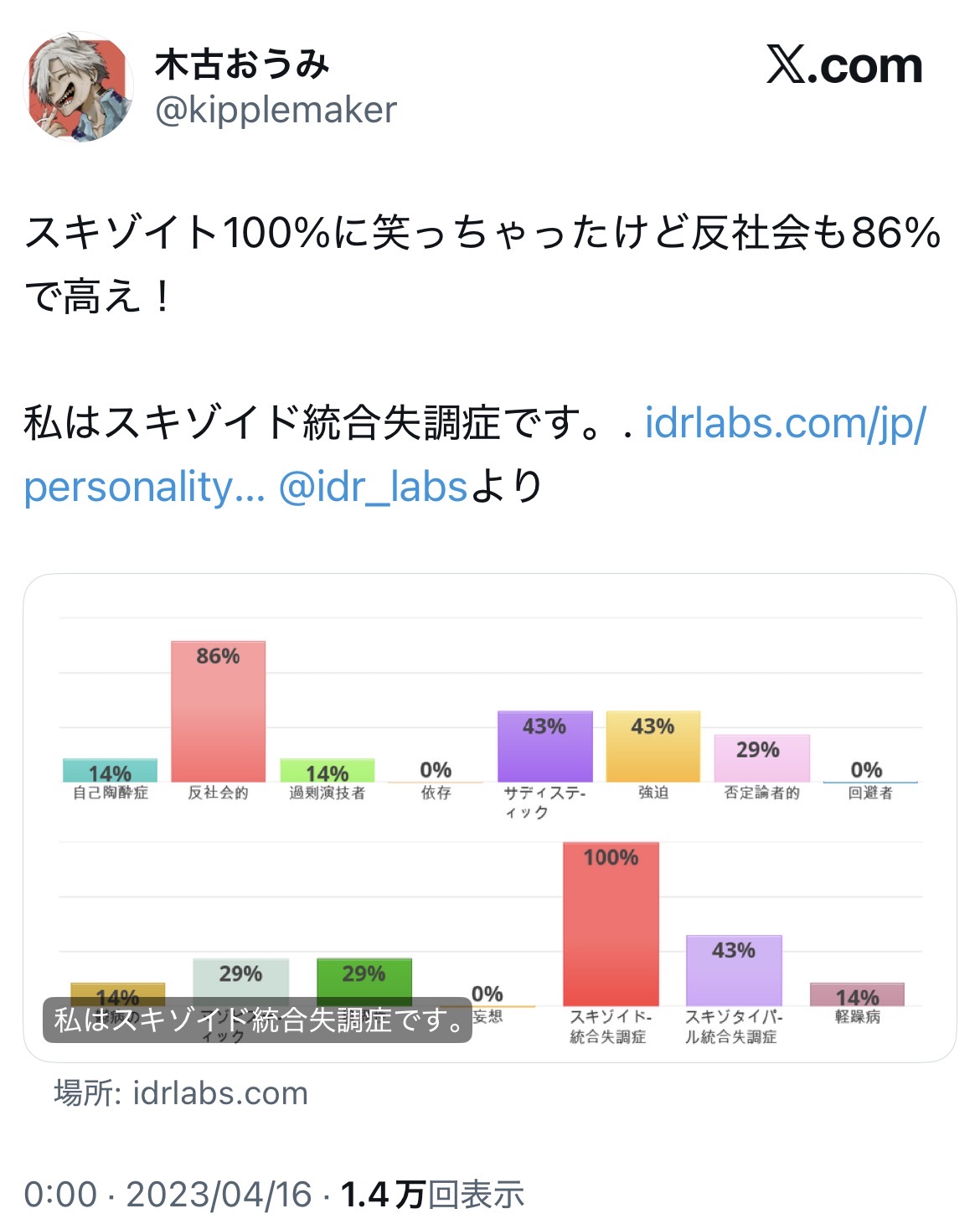 | … | 44無念Nameとしあき26/02/13(金)01:19:30No.1386972385そうだねx6 1770913170410.jpg-(212165 B) 先生今までもX以外で深く調べないからXで出てくるスキゾイドの特徴だけ見て自称したんだと思うよ |