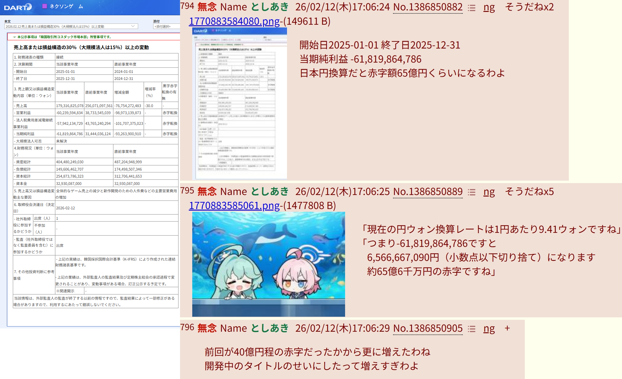 | … | 4無念Nameとしあき26/02/13(金)17:10:40No.1387082450そうだねx2 1770970240977.png-(1278539 B) 数十億の赤字決算叩き出したゴミがなんだって? |