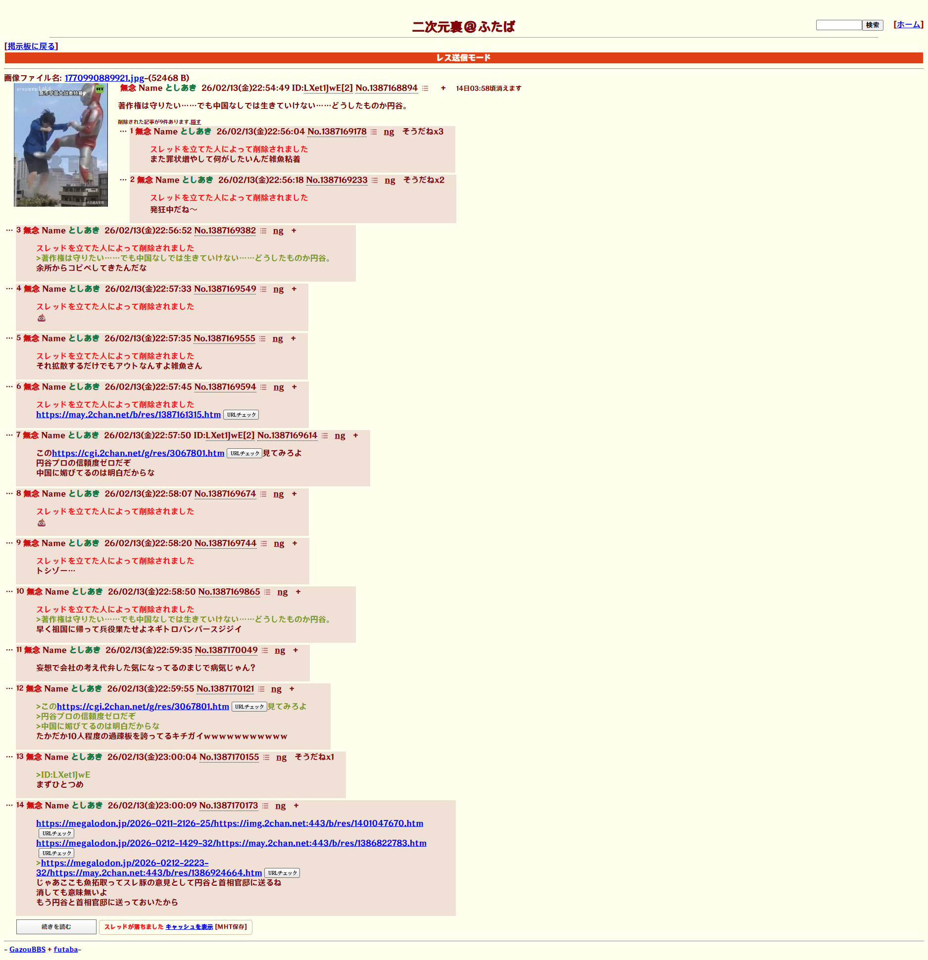 | … | 115無念Nameとしあき26/02/13(金)23:49:14No.1387182024+>https://may.2chan.net/b/res/1387180189.htm |