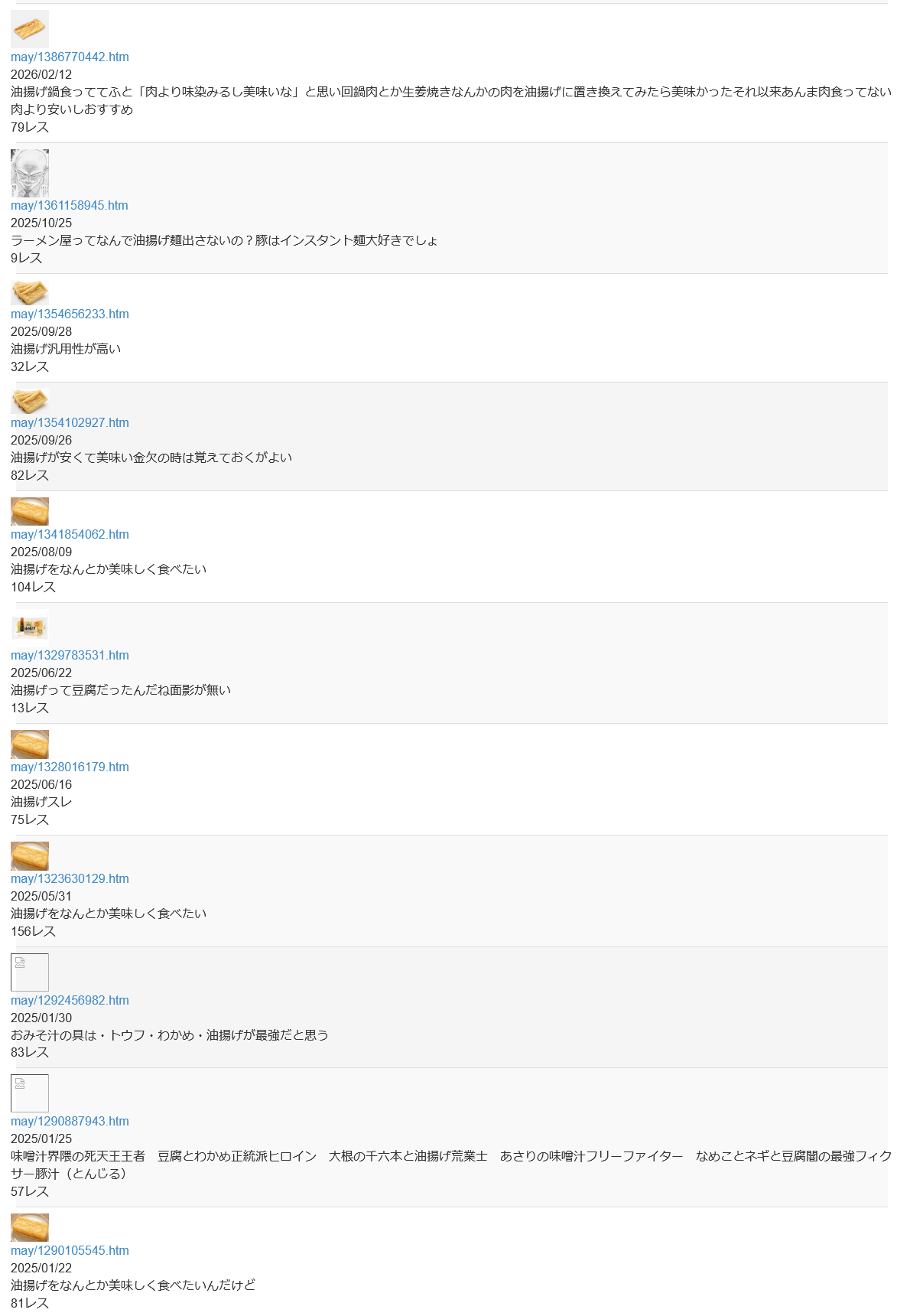 | … | 10無念Nameとしあき26/02/13(金)23:40:51No.1387180055そうだねx7>油揚げをなんとか美味しく食べたい |