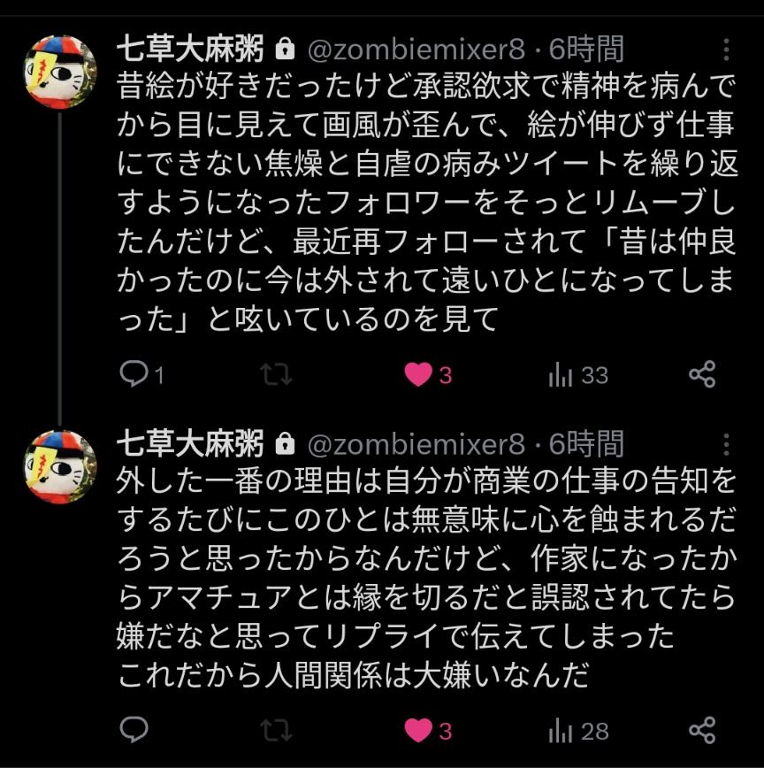 | … | 33無念Nameとしあき26/02/14(土)00:18:17No.1387187903そうだねx8出版社も裏垢で何言ってるかわからんやつ嫌だろ |