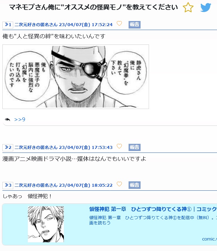 | … | 907無念Nameとしあき26/02/14(土)03:08:04No.1387207009+>匿名で少年漫画に斜に構えた批評をして有象無象と群れる |