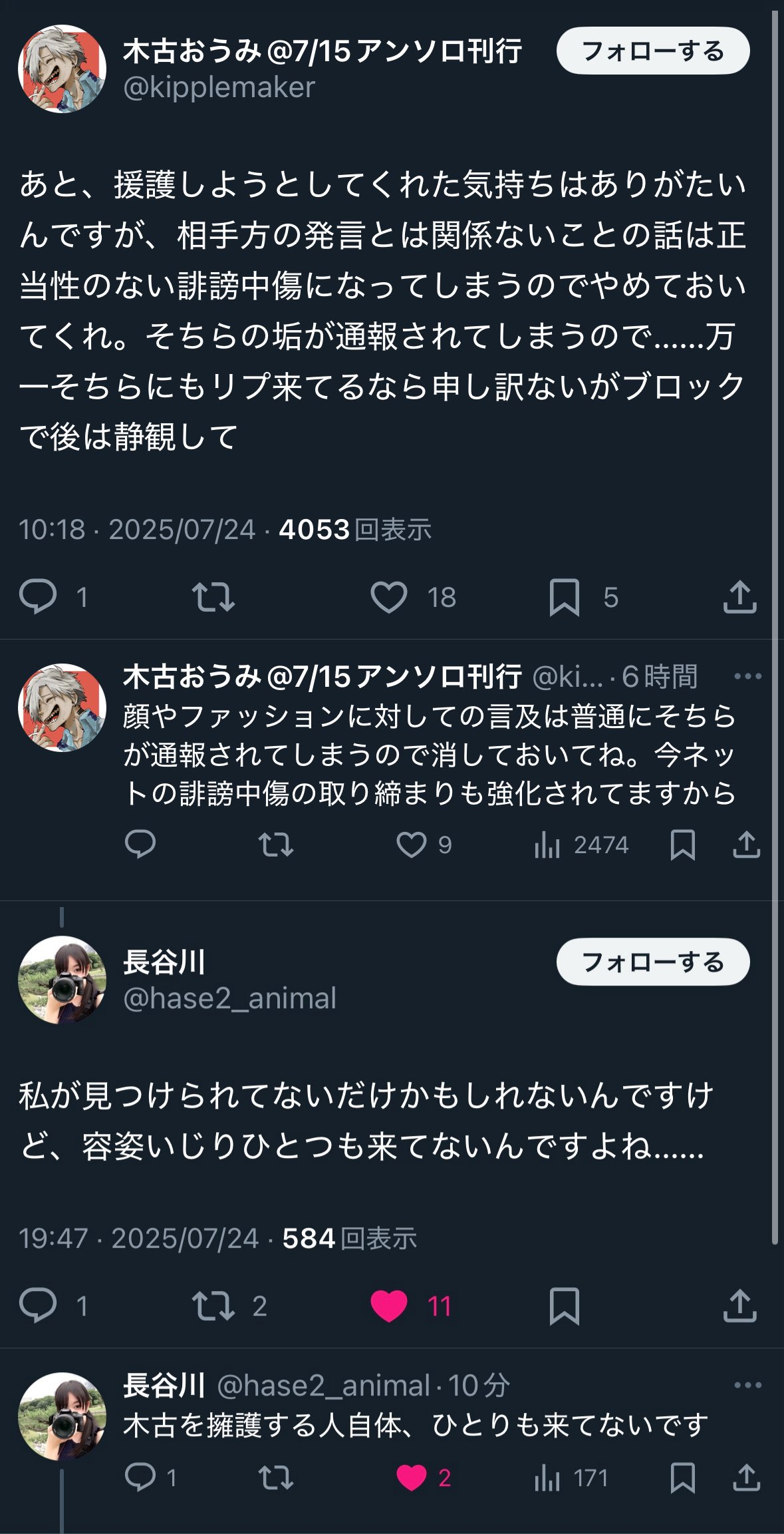 | … | 952無念Nameとしあき26/02/14(土)03:25:00No.1387207972+>部外者だから気楽に野次馬してるけど相手方の心労を考えると面白くもなんともないクソみたいな炎上なんだよな |