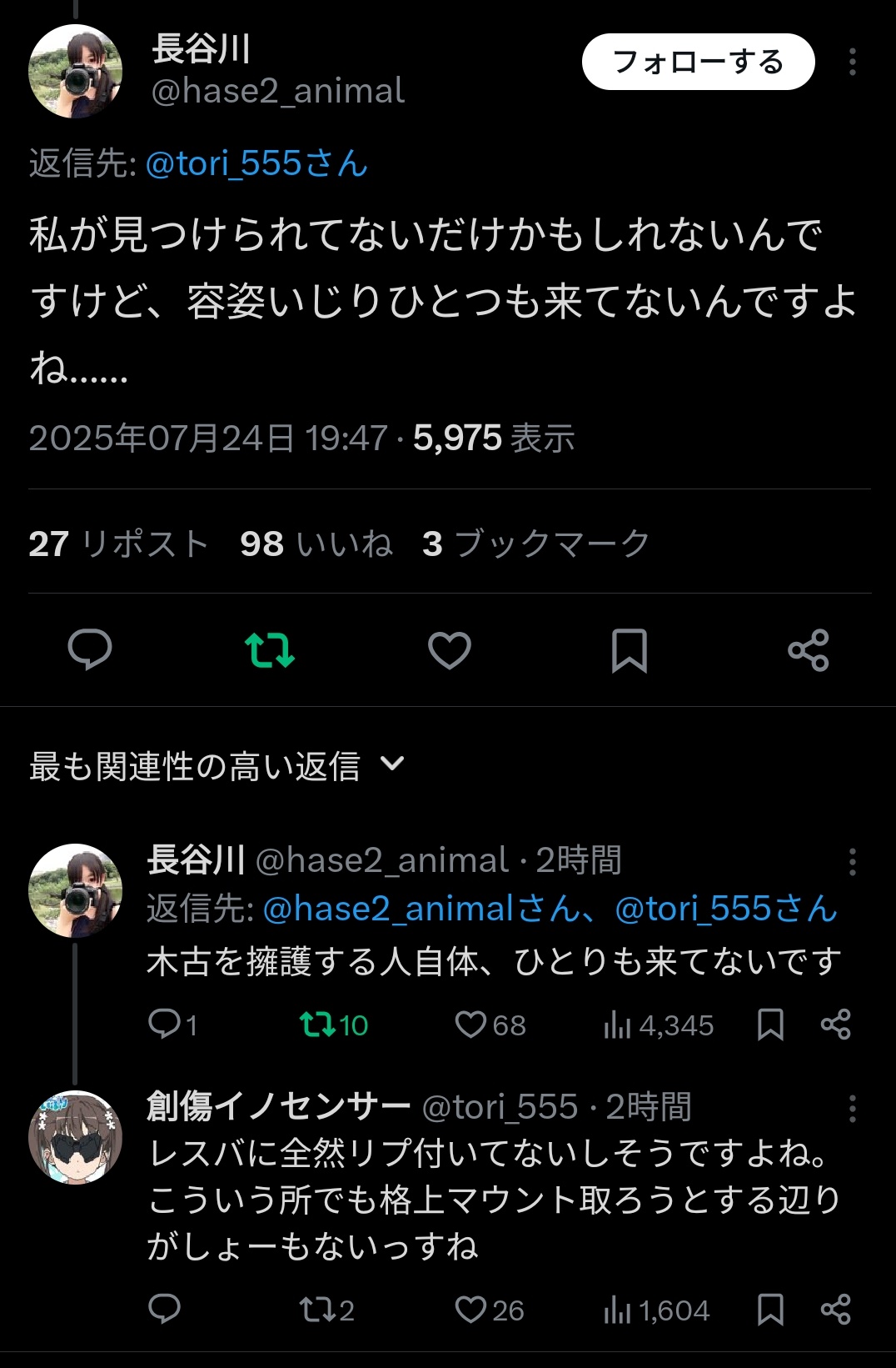 | … | 922無念Nameとしあき26/02/14(土)03:13:55No.1387207377+>まず本人がどう思っててもアカウントに表も裏も無いんだがな |