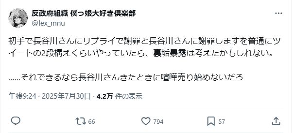 | … | 67無念Nameとしあき26/02/14(土)00:31:50No.1387190363そうだねx11 1770996710215.jpg-(108690 B) >七草のポストだと自分が迷惑かけた自覚あるんじゃん |