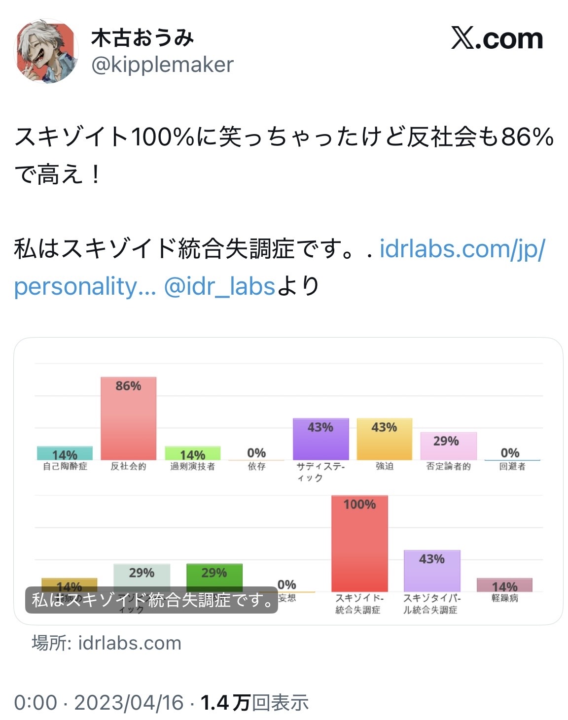 | … | 968無念Nameとしあき26/02/14(土)03:30:18No.1387208267+よりにもよってスキゾイドは如何にも厨二病が好きなそうな感じのやつだし… |