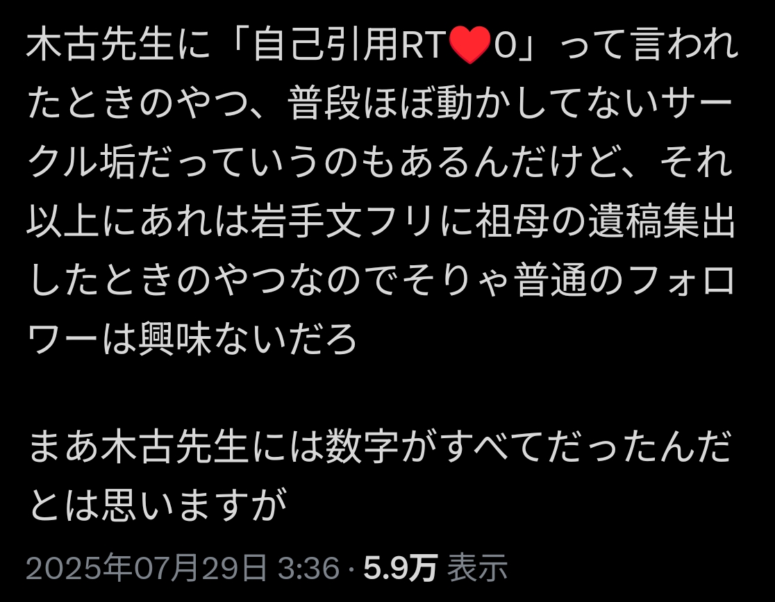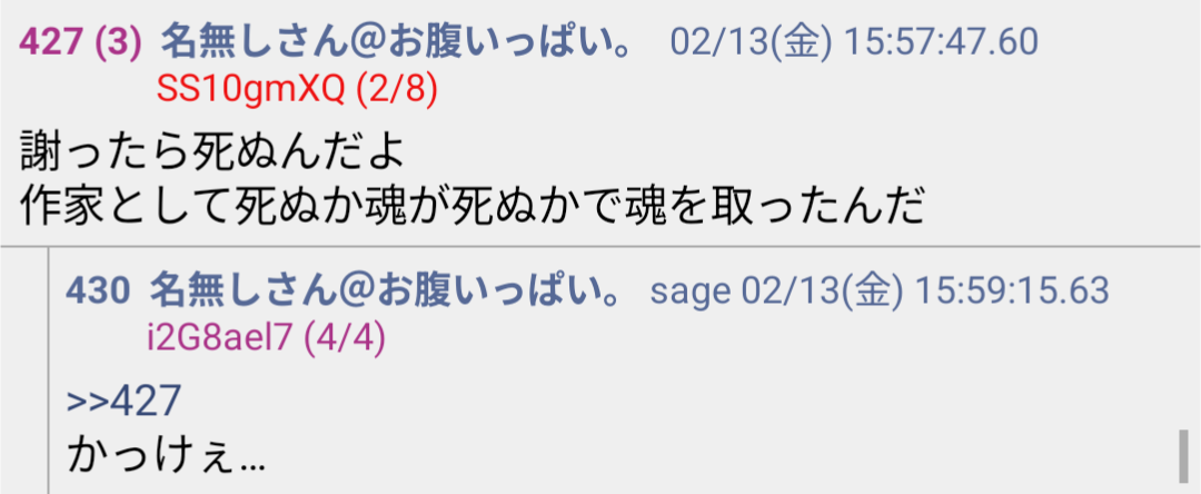 | … | 75無念Nameとしあき26/02/14(土)00:34:20No.1387190795+作家生命を捨ててもHさんに勝ちたいと? |