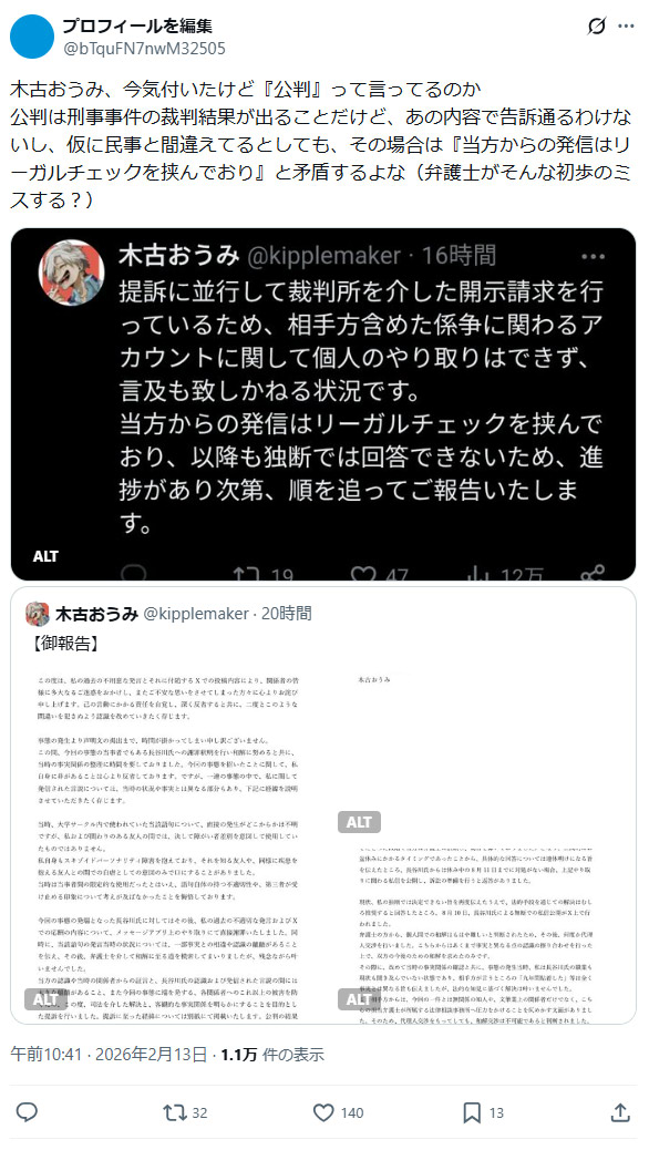 | … | 50無念Nameとしあき26/02/14(土)00:26:12No.1387189376そうだねx5>先生こいつは開示して訴えた方がいいと思います |