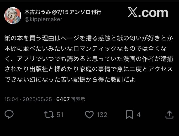 | … | 54無念Nameとしあき26/02/14(土)00:27:58No.1387189677そうだねx10別にこの訴訟通じておうみセンセイの評判とかが回復したり出版社が取引再開してくれるとは到底思えないが訴訟費用ひねり出せるくらいにはセンセイもリッチなんですなあ |