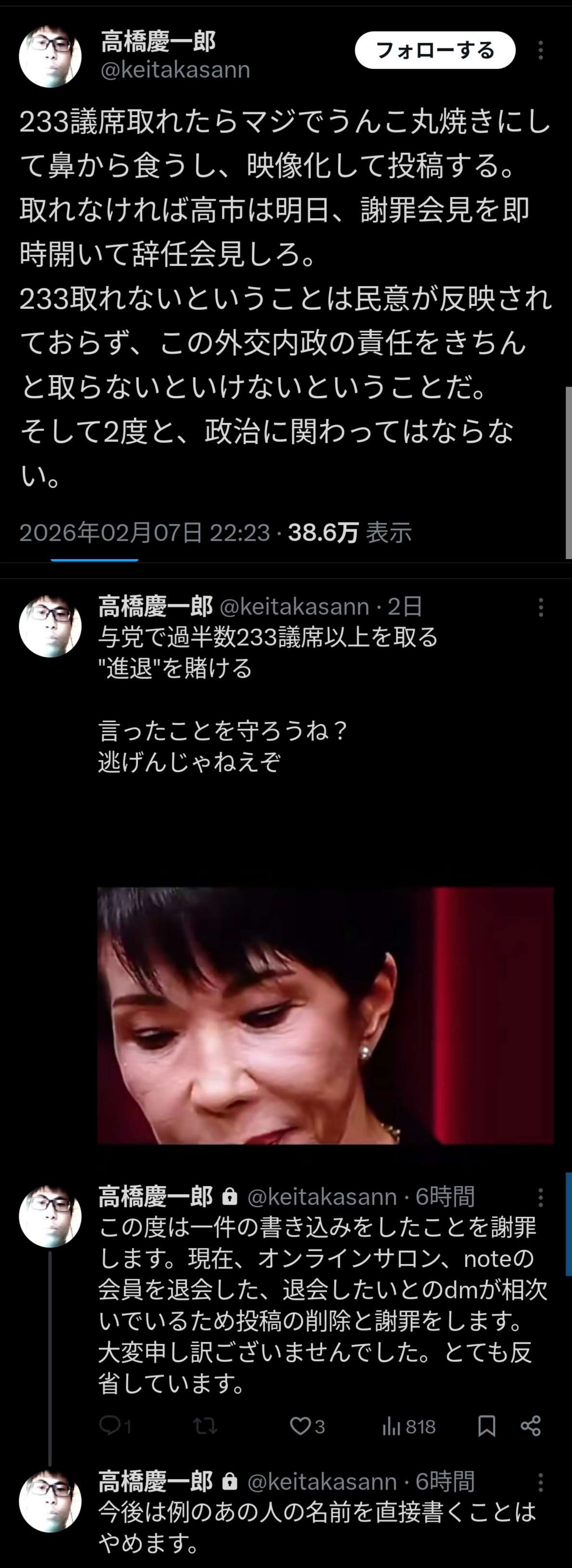 | … | 18無念Nameとしあき26/02/14(土)02:42:58No.1387205553+こいつ昔からいる炎上狙いのネタアカウントだろ |