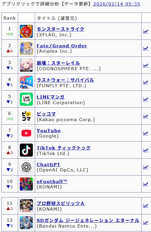 | … | 84無念Nameとしあき26/02/14(土)09:02:19No.1387230291そうだねx3ステラソラは一ヶ月くらいは50位キープしてたから課金してくれる人は多かったね |