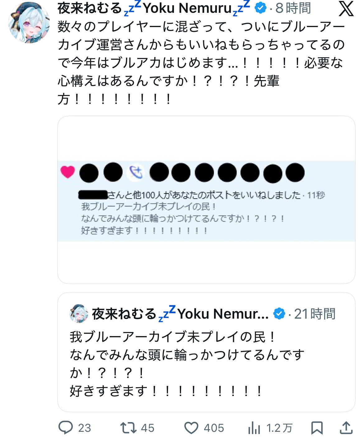 | … | 840無念Nameとしあき26/02/14(土)14:15:58No.1387292238+今ホロライブの人がウマ実況してるけどブルアカはアニバなのにVの人はノータッチなの? |