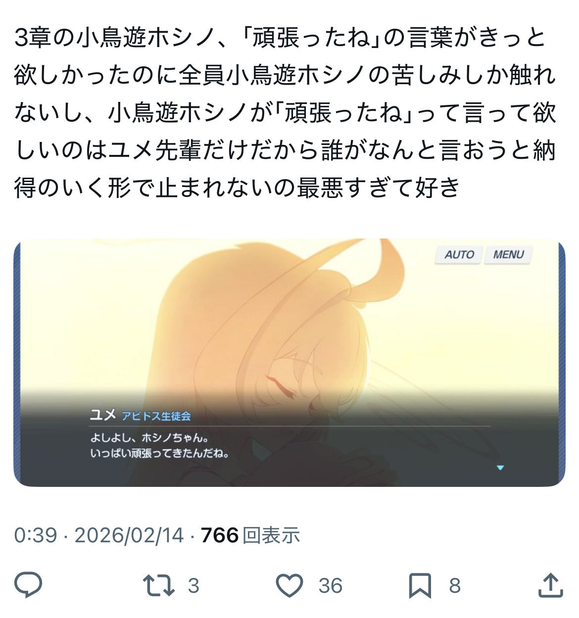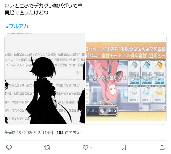 | … | 869無念Nameとしあき26/02/14(土)14:26:30No.1387294295そうだねx7 1771046790535.jpg-(18973 B) >でもまたこうやってブルアカで盛り上がれてうれしいわよ |