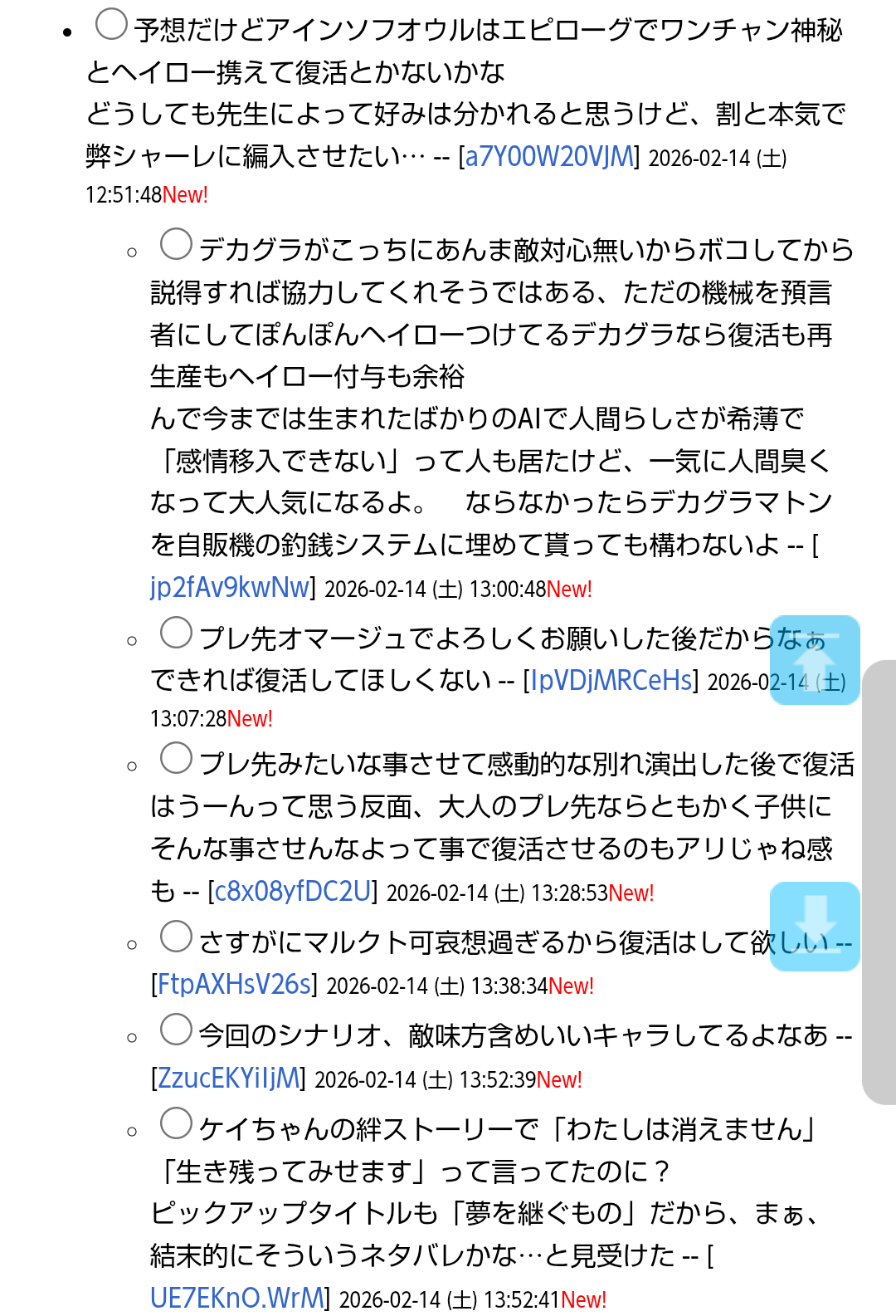 | … | 1無念Nameとしあき26/02/14(土)08:11:20No.1387224049そうだねx12真面目に二期祈願 |