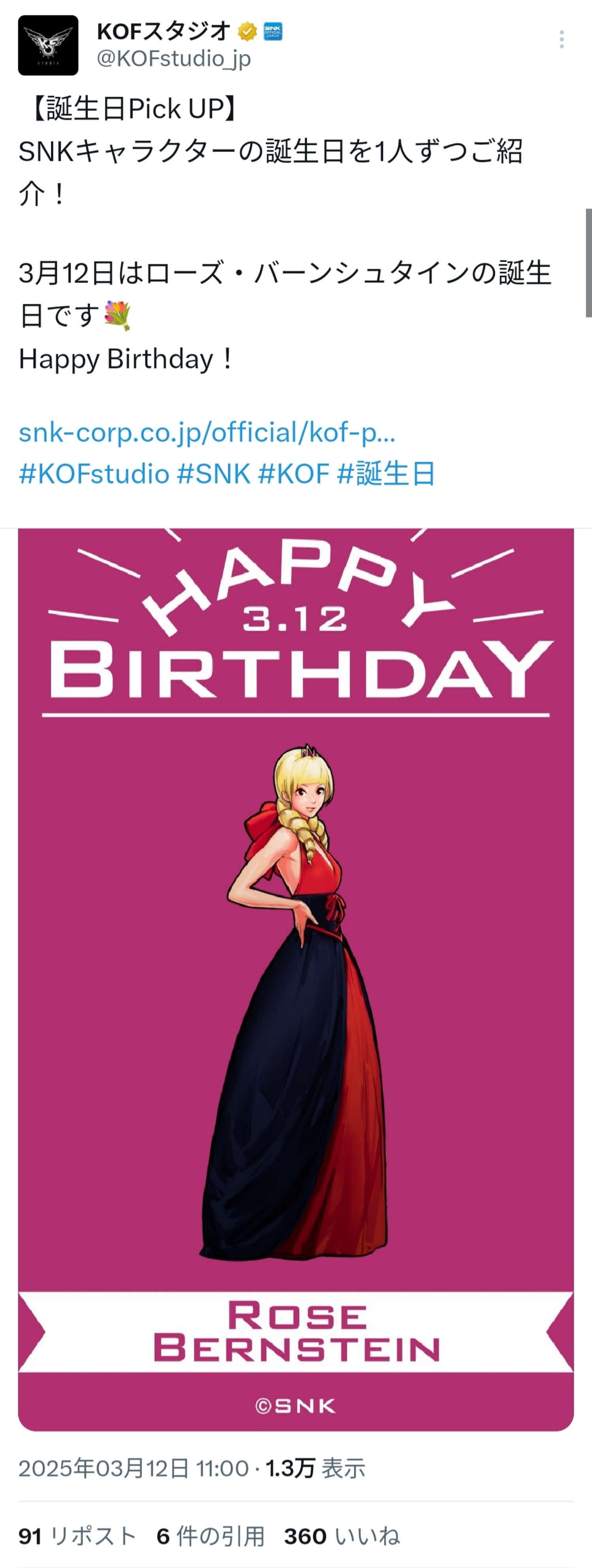 | … | 4無念Nameとしあき26/02/14(土)09:00:21No.1387230009そうだねx2KOFスタジオなのにサムスピキャラの誕生日祝ってKOFキャラの誕生日祝わないの意味わからない |