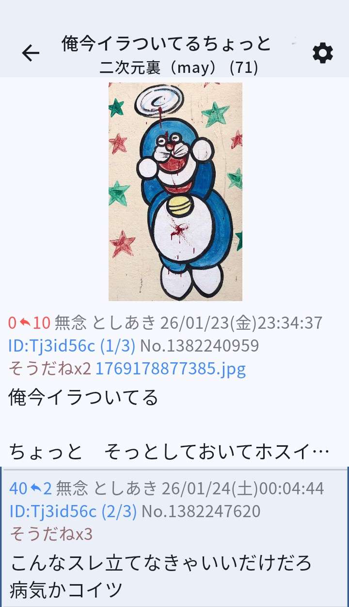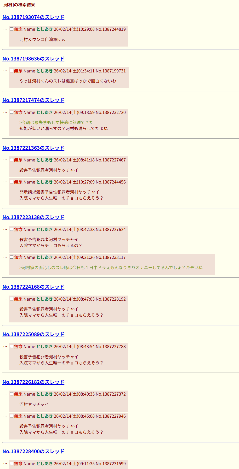 | … | 46無念Nameとしあき26/02/14(土)09:39:15No.1387235982そうだねx3クソスレ乱立とふたば荒らしが努力? |