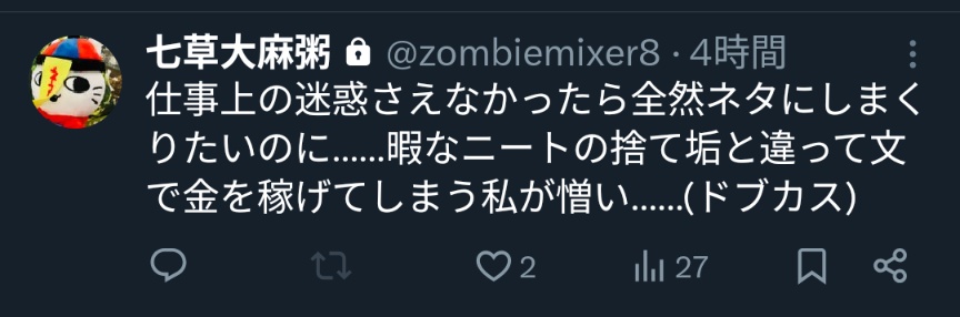 | … | 90無念Nameとしあき26/02/14(土)23:34:17No.1387440475そうだねx1字書きに擦り寄ってくる絵描きが多い |