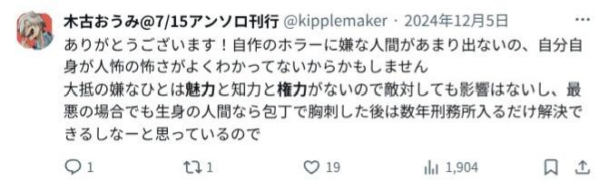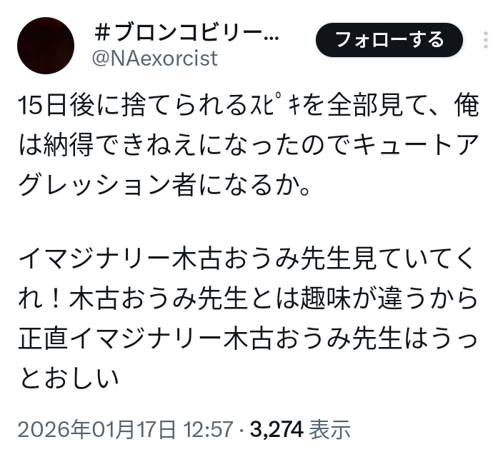 | … | 18無念Nameとしあき26/02/14(土)23:21:40No.1387437166そうだねx3>>木古おうみを破滅させるのに暴力を振るう必要はない |