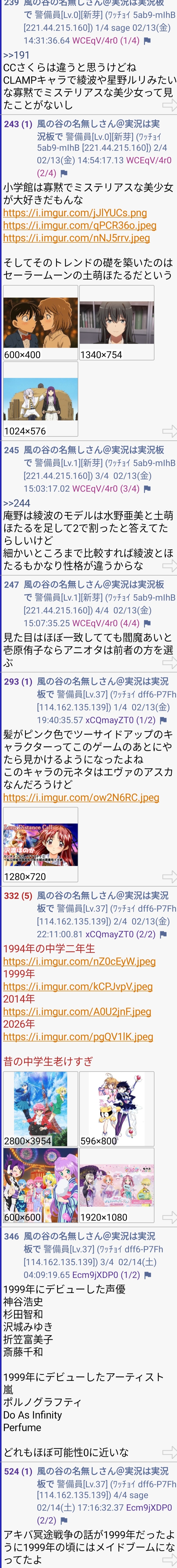 | … | 13無念Nameとしあき26/02/15(日)00:53:47No.1387459133+セイントテールもふしぎ遊戯もウエピーも中学生ヒロインだからスレ画が老けすぎなだけやな |