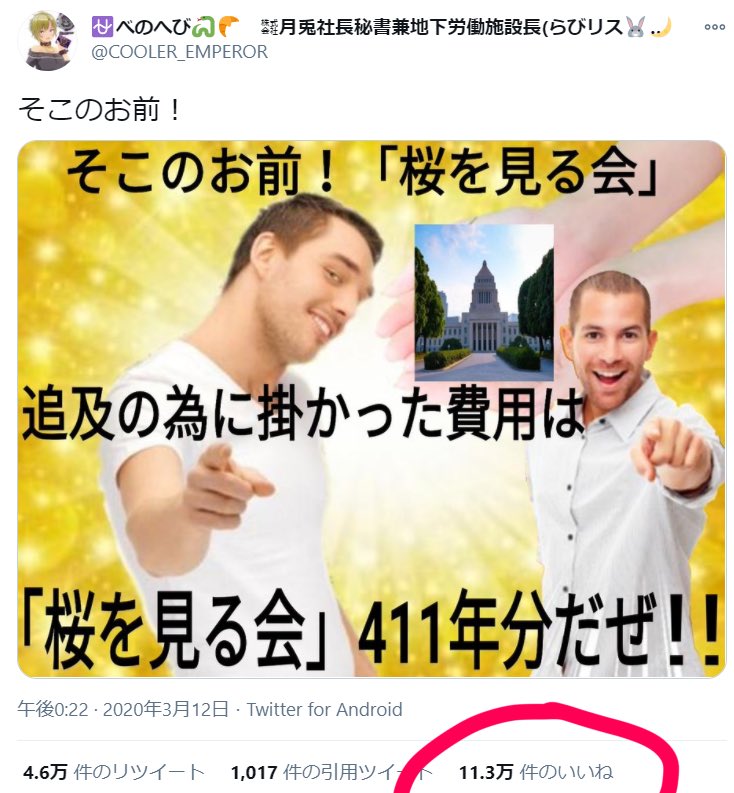 | … | 62無念Nameとしあき26/02/15(日)07:46:55No.1387495041そうだねx11>桜を見る会の反社については何も言わないのにこれは怒るんだな |
