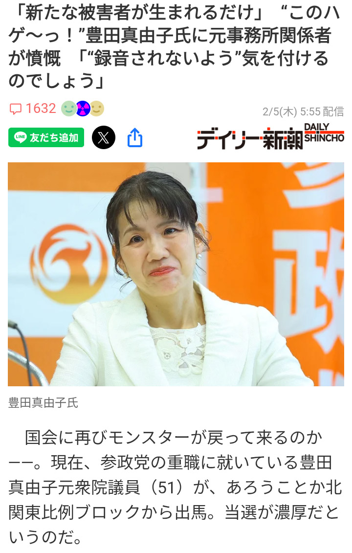 | … | 35無念Nameとしあき26/02/15(日)08:56:50No.1387505095そうだねx2まあ参政党にはお似合いすぎる人材だと思う |