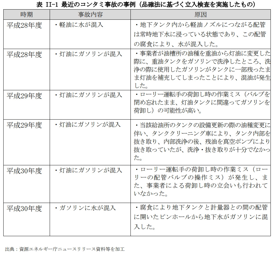 灯油にガソリンが混じる