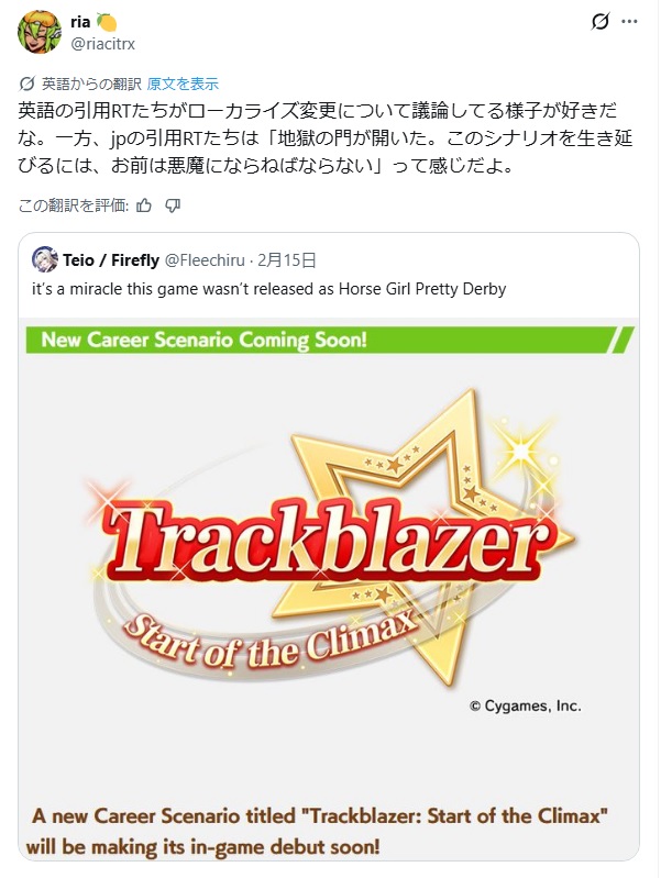 | … | 69無念Nameとしあき26/02/16(月)16:05:53No.1387837609+脚質バランスも取れてきたしアメリカでは既にやったしeスポ参戦って話はガチなのかな |
