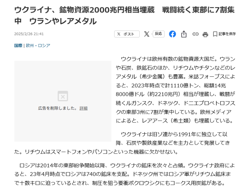 | … | 47無念Nameとしあき26/02/16(月)21:45:56No.1387917897そうだねx2>ウクライナから石油が採れればアメリカが参戦してくれたのにな・・・ |