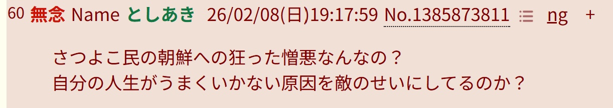 | … | 38無念Nameとしあき26/02/17(火)21:13:31No.1388122020そうだねx3なんでコリアン認定してるのか意味不明すぎる |