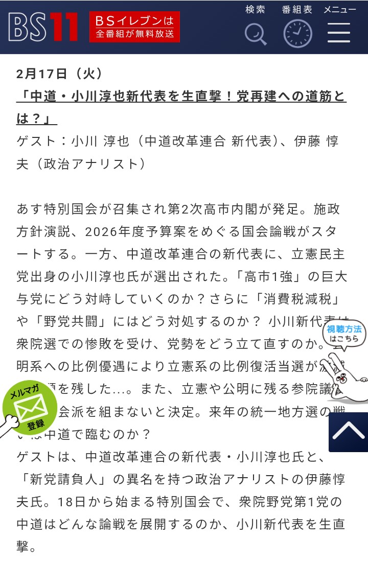 | … | 38無念Nameとしあき26/02/17(火)21:14:20No.1388122251+>BS11に代表来てるね |