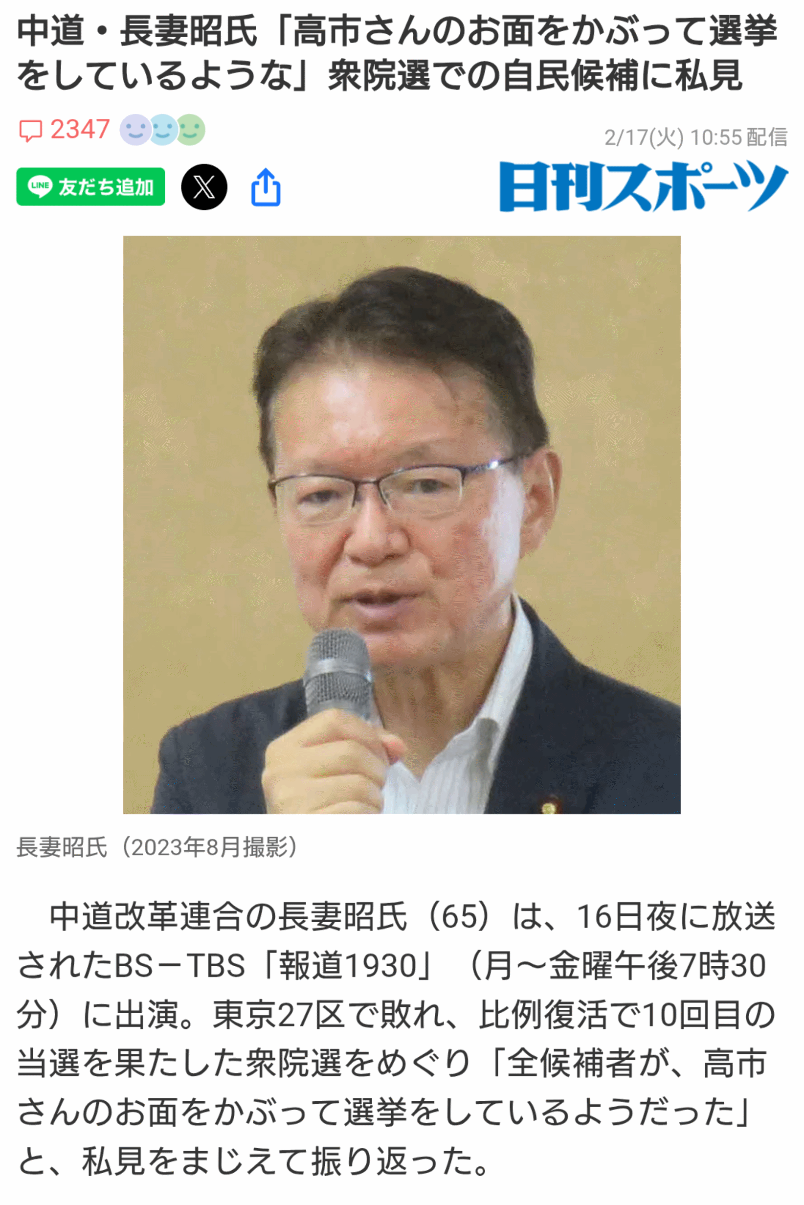 | … | 73無念Nameとしあき26/02/17(火)21:18:37No.1388123449そうだねx3>「選挙前に離党しろって話」77歳“中道”落選議員の“離党理由”に批判殺到…泥船化した同党は崩壊寸前 |