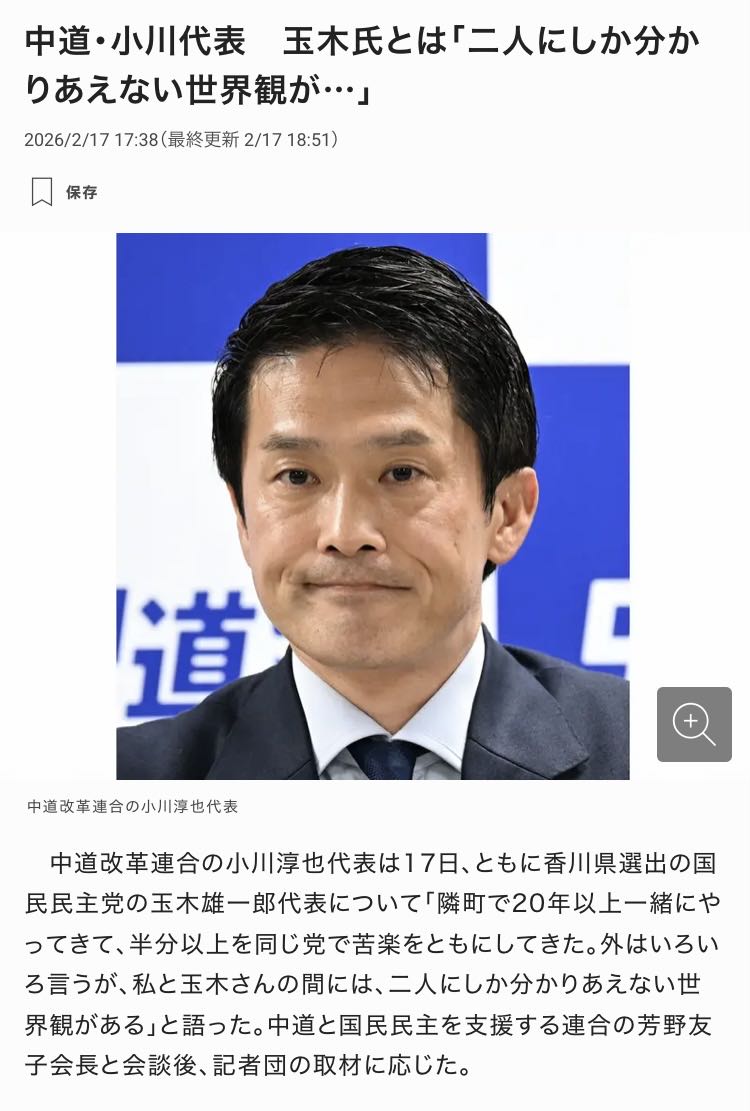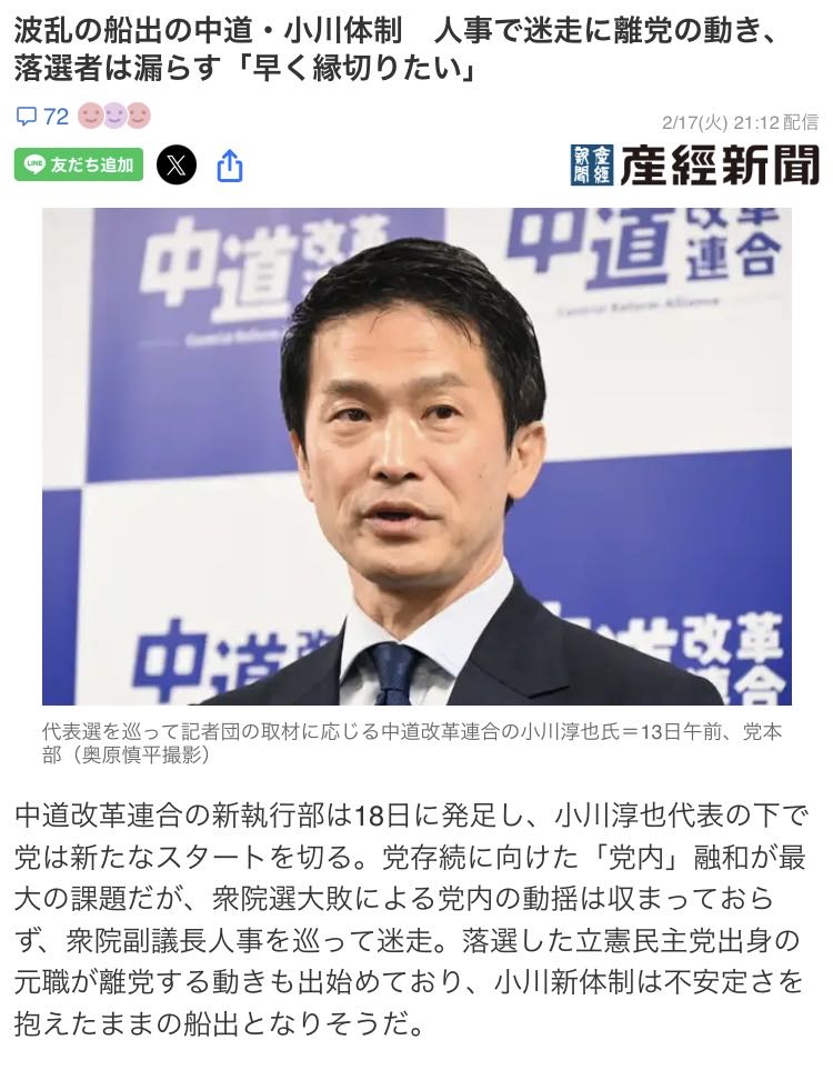 | … | 972無念Nameとしあき26/02/18(水)00:02:43No.1388165587+>中道は党首が小川になった事で世代交代した感がある |