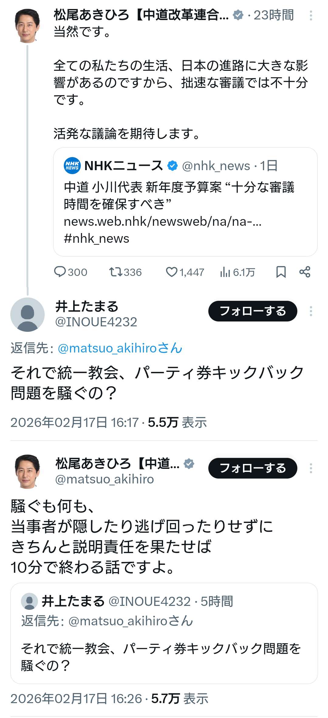 | … | 910無念Nameとしあき26/02/17(火)23:36:17No.1388159948+>れいわ大石は玉木にダル絡みしてるよ |