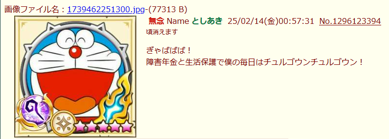 | … | 2無念Nameとしあき26/02/17(火)22:43:48No.1388146504そうだねx28突如自己紹介スレを立てる病気 |