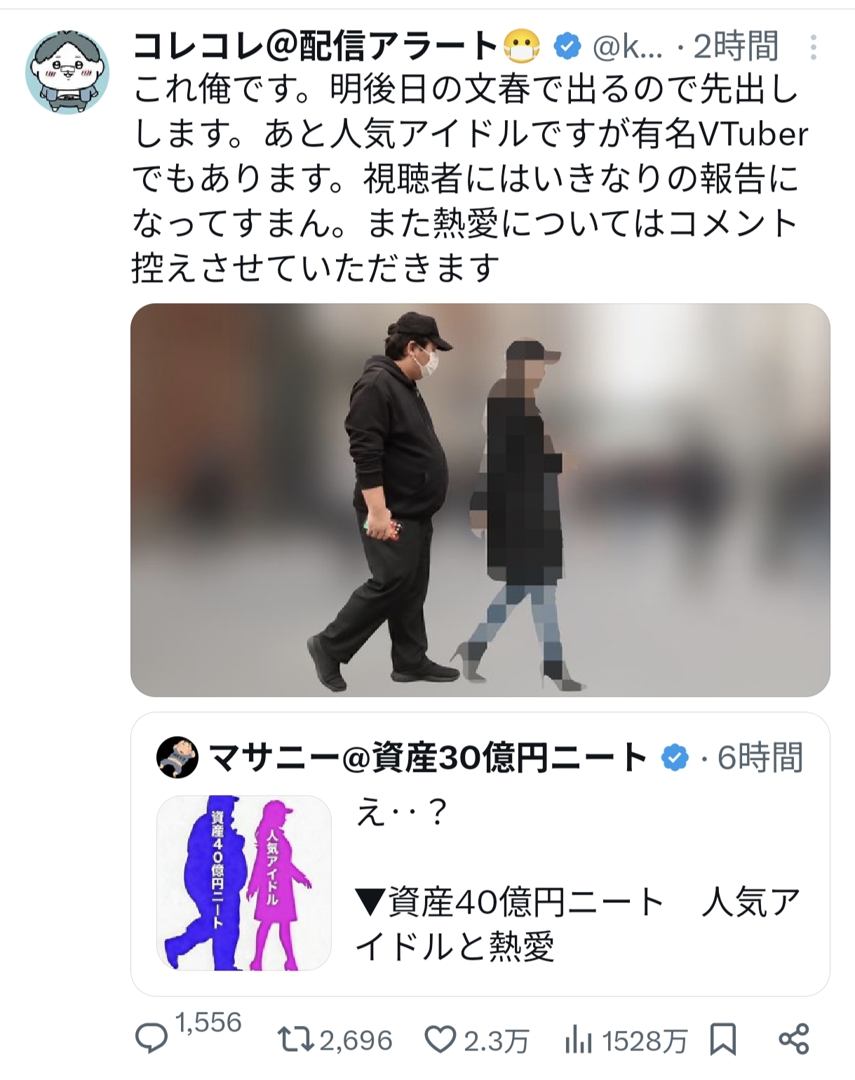 | … | 579無念Nameとしあき26/02/18(水)06:14:44No.1388189813+文春の認識だと人気アイドルってだけな感じだしV活動はオマケなんじゃないか |