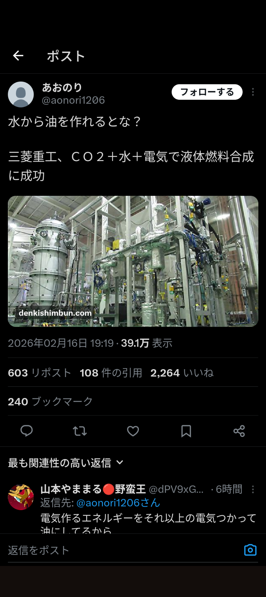 | … | 44無念Nameとしあき26/02/18(水)23:08:32 ID:HlELyoukNo.1388364966+>核の余剰電力で燃料作る時代が? |