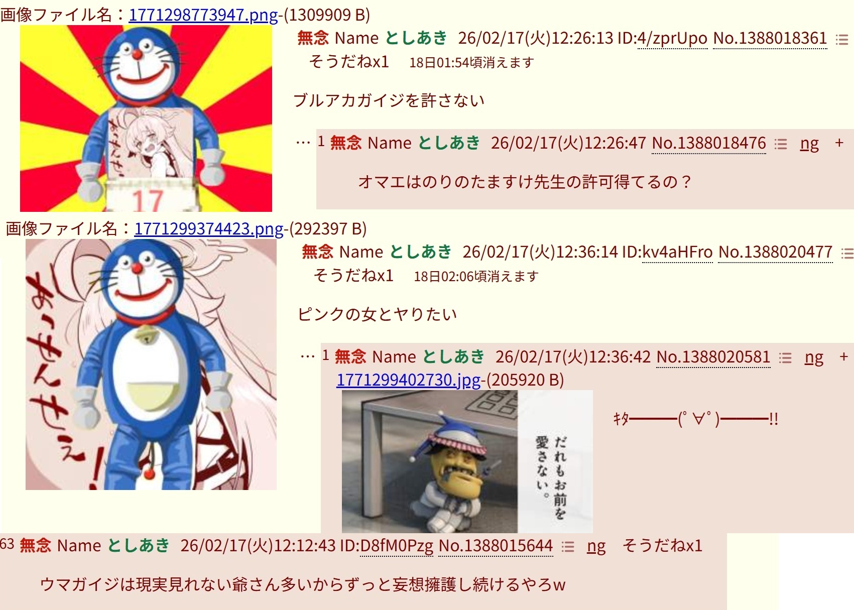 | … | 46無念Nameとしあき26/02/18(水)20:46:27No.1388323290そうだねx1 1771415187985.jpg-(86150 B) >この粘着本気でふたばを私物化してるつもりなんだ? |
