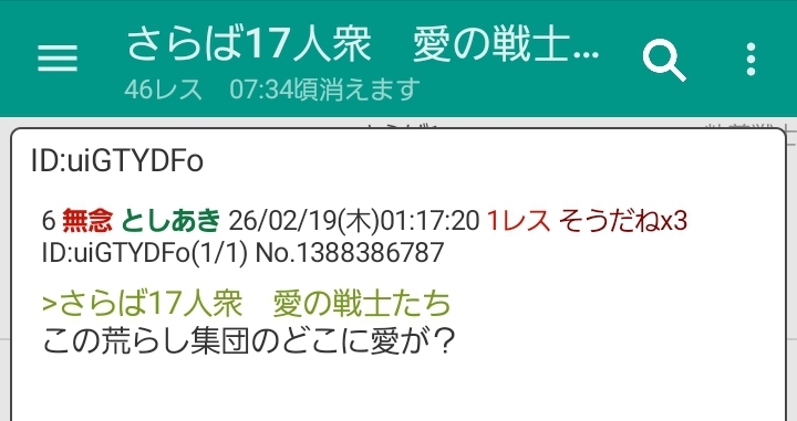 | … | 23無念Nameとしあき26/02/19(木)01:37:59No.1388388965そうだねx3>さらば17人衆 |
